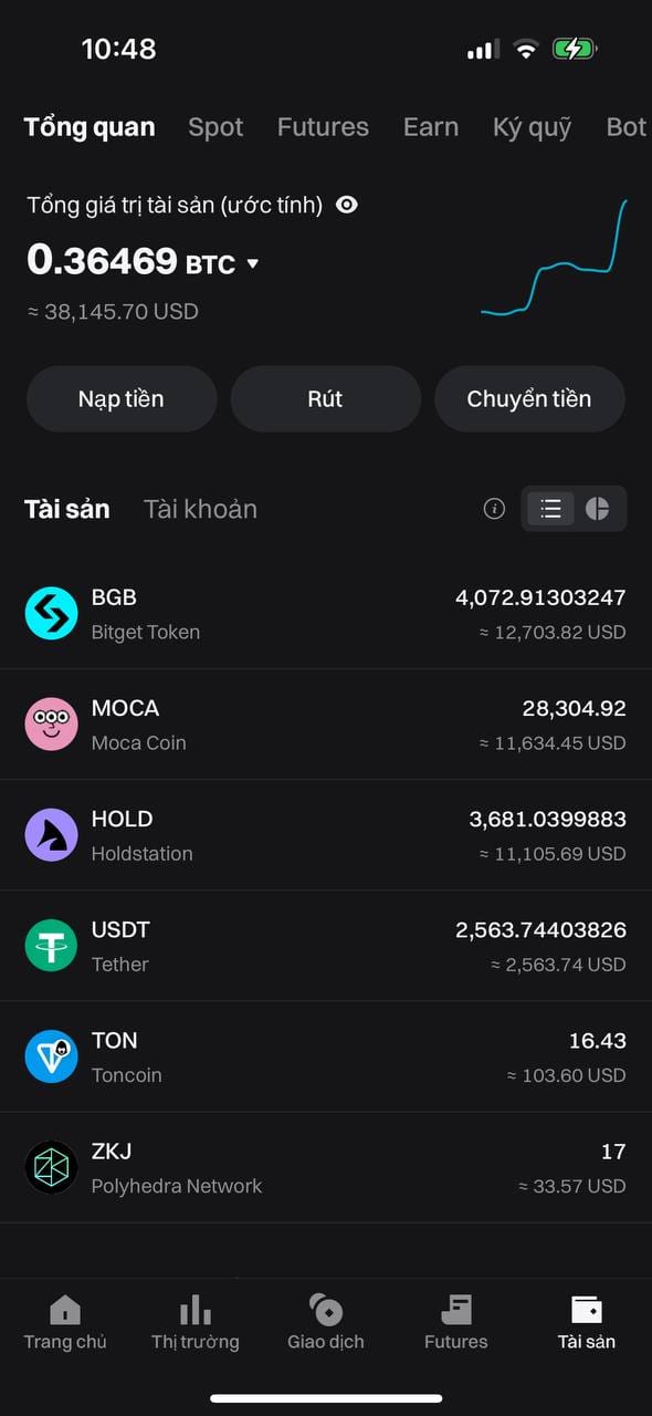 - TK Bitget từ 9k nhờ 3 con (#hold (NAMBIT), #BGB, #MOCA làm lên 38k đô.